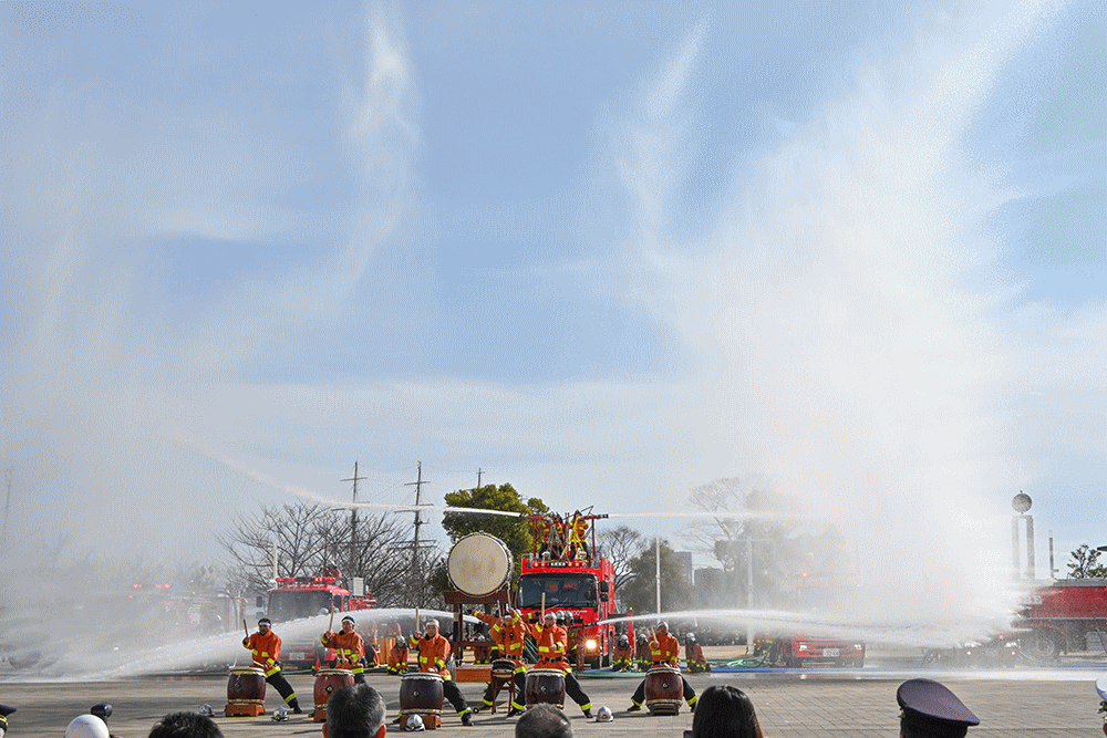 神戸市消防出初式・フェニックス放水と和太鼓演奏